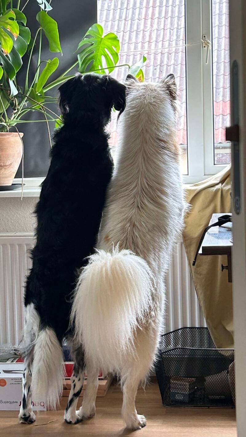 Jeg går ikke ture med dem. Af den grund at jeg har nogle fysiske gener, der gør, at jeg ikke kan holde til at gå med flere hunde end min egen. Men jeg kan tilbyde en rigtig stor indhegnet have, hvor hundene kan boltre sig alt, hvad de har lyst til. Og desuden kan en gåtur ikke måle sig med det at lege med en anden hund. Det trætter og stimulerer dem langt mere. Det er i hvert fald min erfaring.